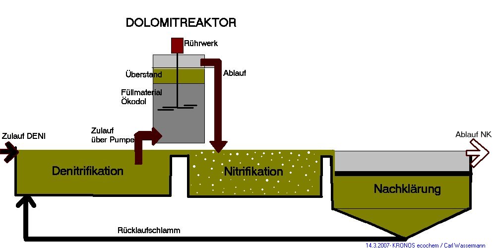 Von verschiedenen Anwendern wird der Dolomitreaktor auch als "Opferkalksystem" bezeichet, was etwas in die Irre führt, da nur das spezielle Dolomit (im Handel als "Ökodol" bekannt) die speziellen Eigenschaften des Verfahrens erfüllen kann. Mit einer Kalkfüllung wäre der Reaktor etwa 10 - 20 mal größer, da entsprechende Kontaktzeiten eingehalten werden müssen. Richtig ist dagegen, dass das Verfahren als nachfüllbares Opfersystem betrachtet werden kann.